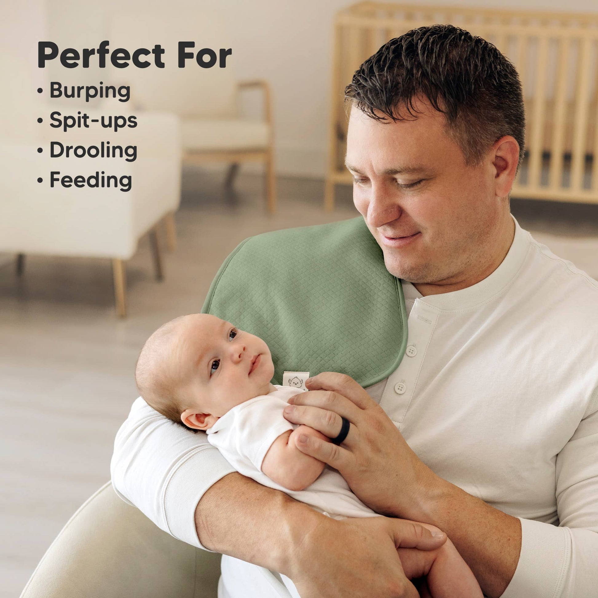 - Broad coverage baby burp cloths to keep your clothes mess-free